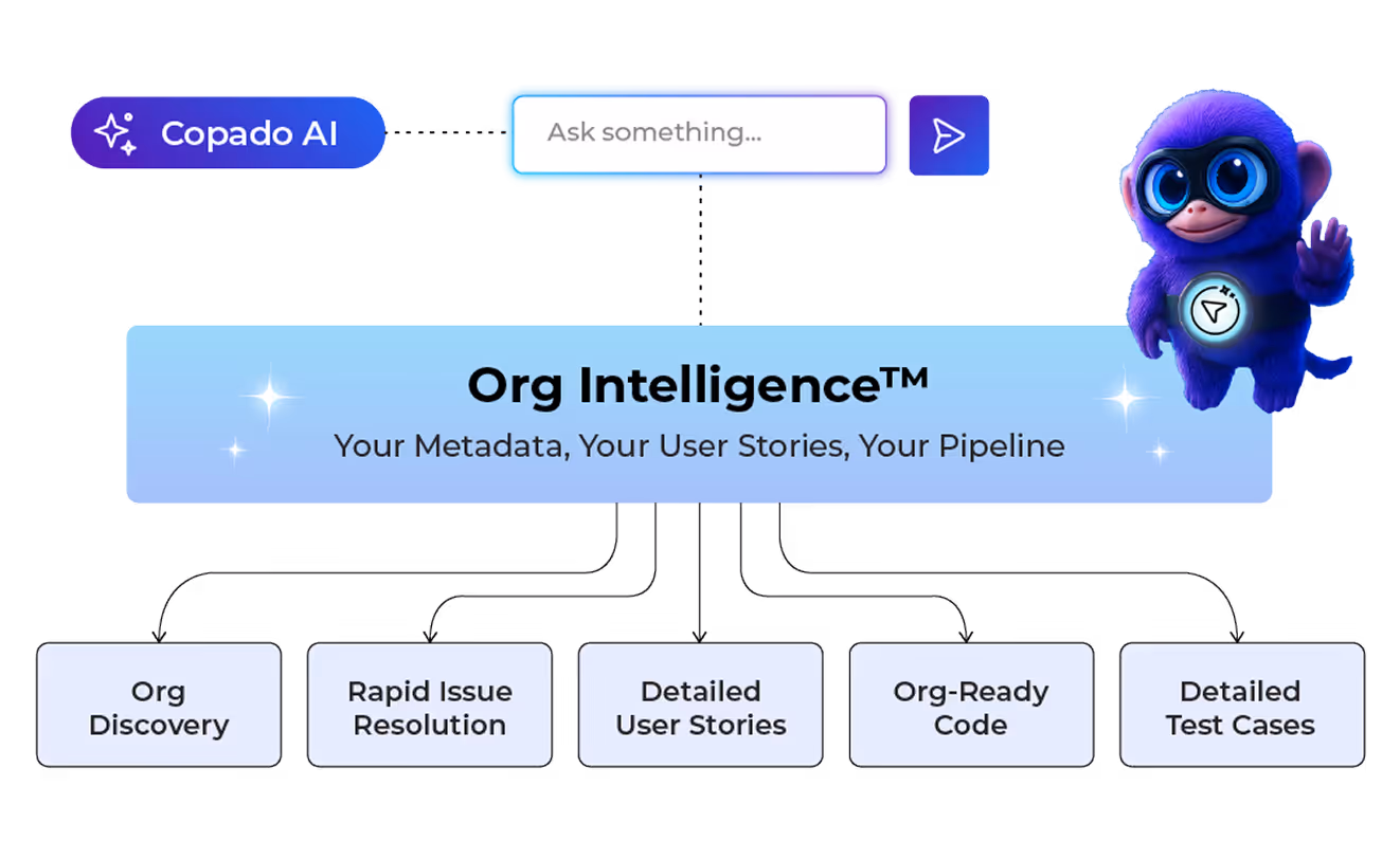 Stop flying blind in Salesforce. Copado Org Intelligence™ maps every dependency, relationship, and hidden risk in your org — giving you the clarity to move fast, avoid surprises, and release with confidence.