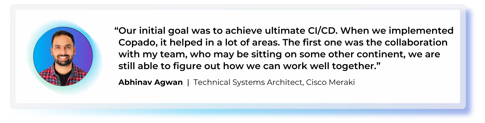 The turning point came when the Cisco Meraki team discovered Copado at Dreamforce. "Before Copado, we never had DevOps practices or processes. DevOps was a new term for everyone in the org, including me," Agwan comments.
